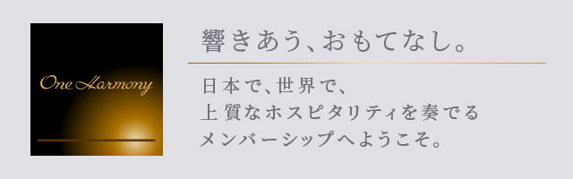 One Harmonyは、オークラ ホテルズ リゾーツ、ニッコー・ホテルズ・インターナショナル、ホテルJALシティでご利用ただける、入会金・年会費無料の会員プログラムです。