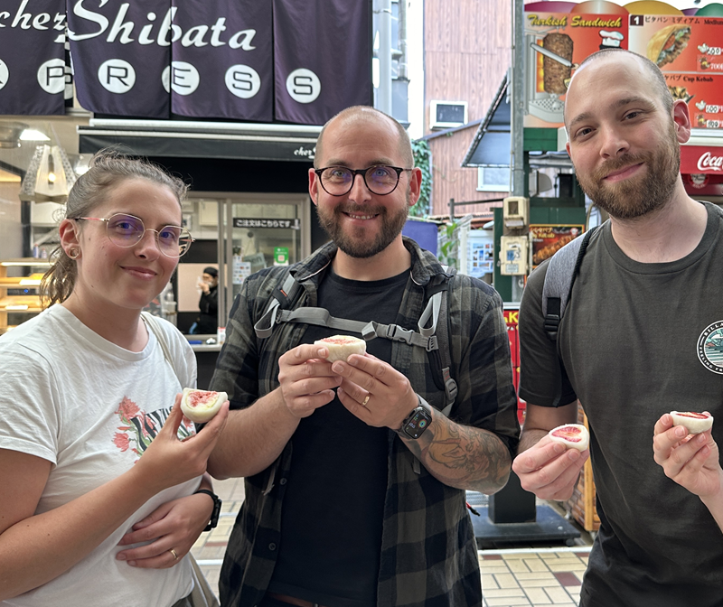 Price includes a local tour guide, 5 street foods (sweet and savory) and 1 omikuji (paper fortune)